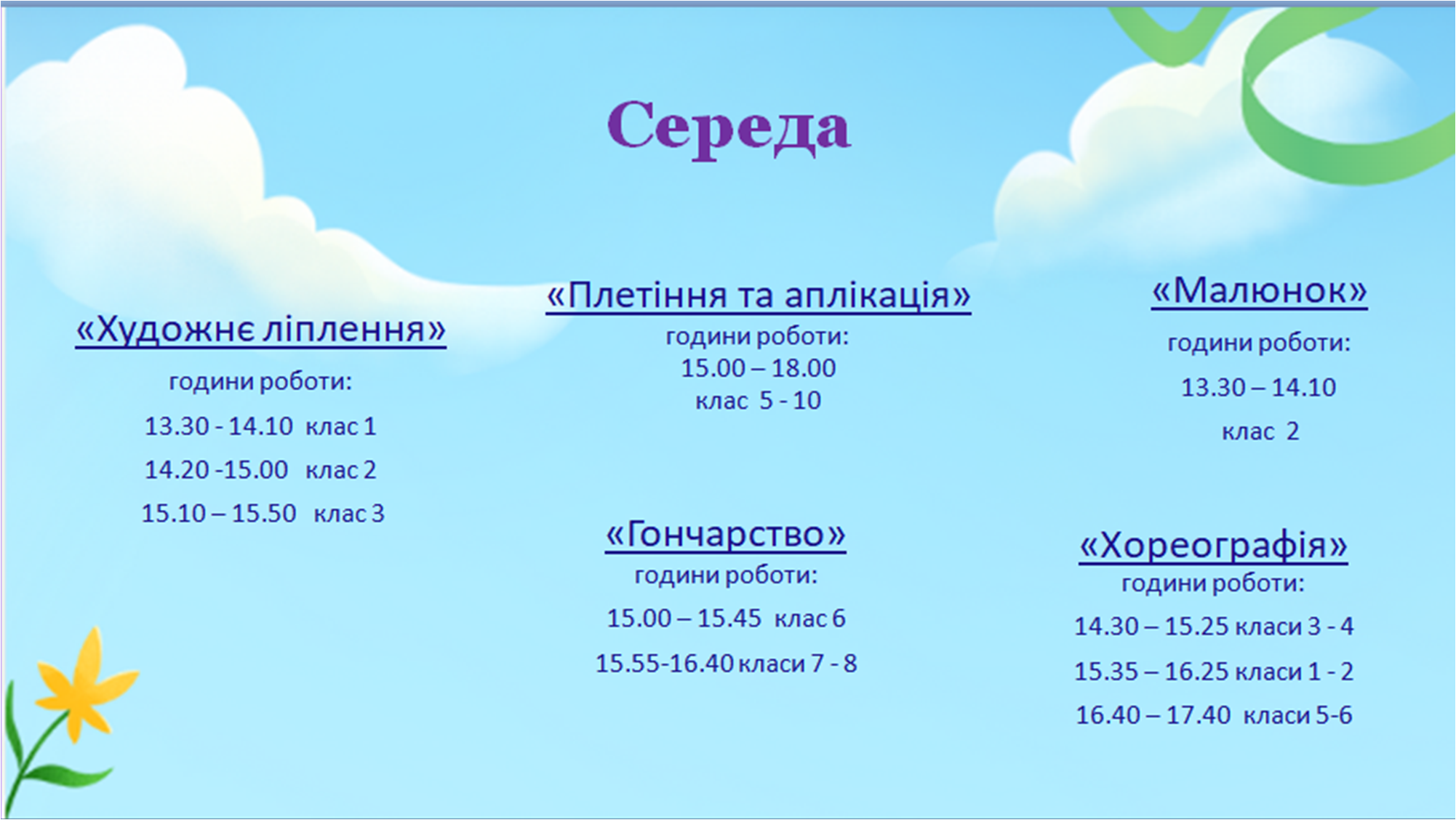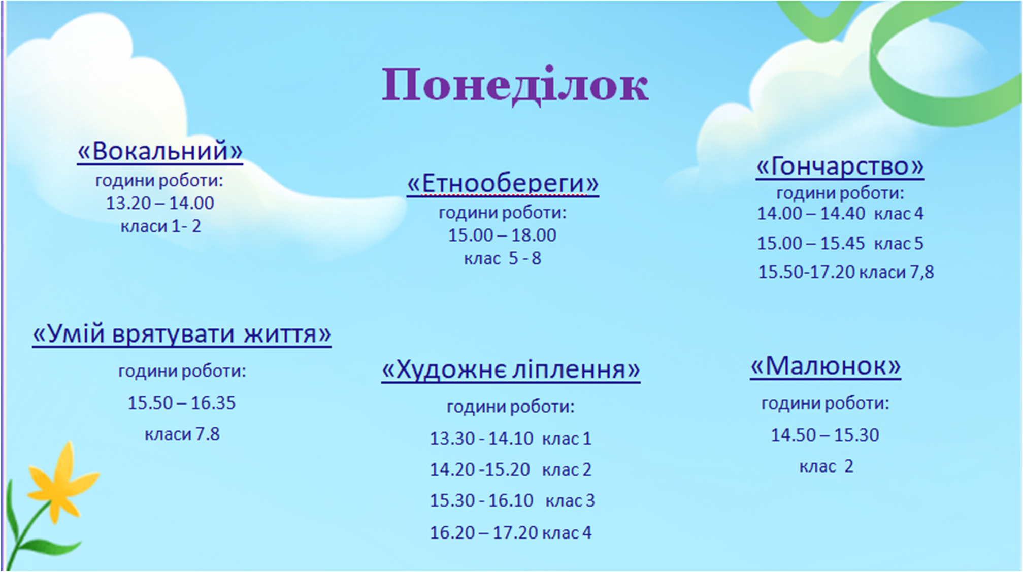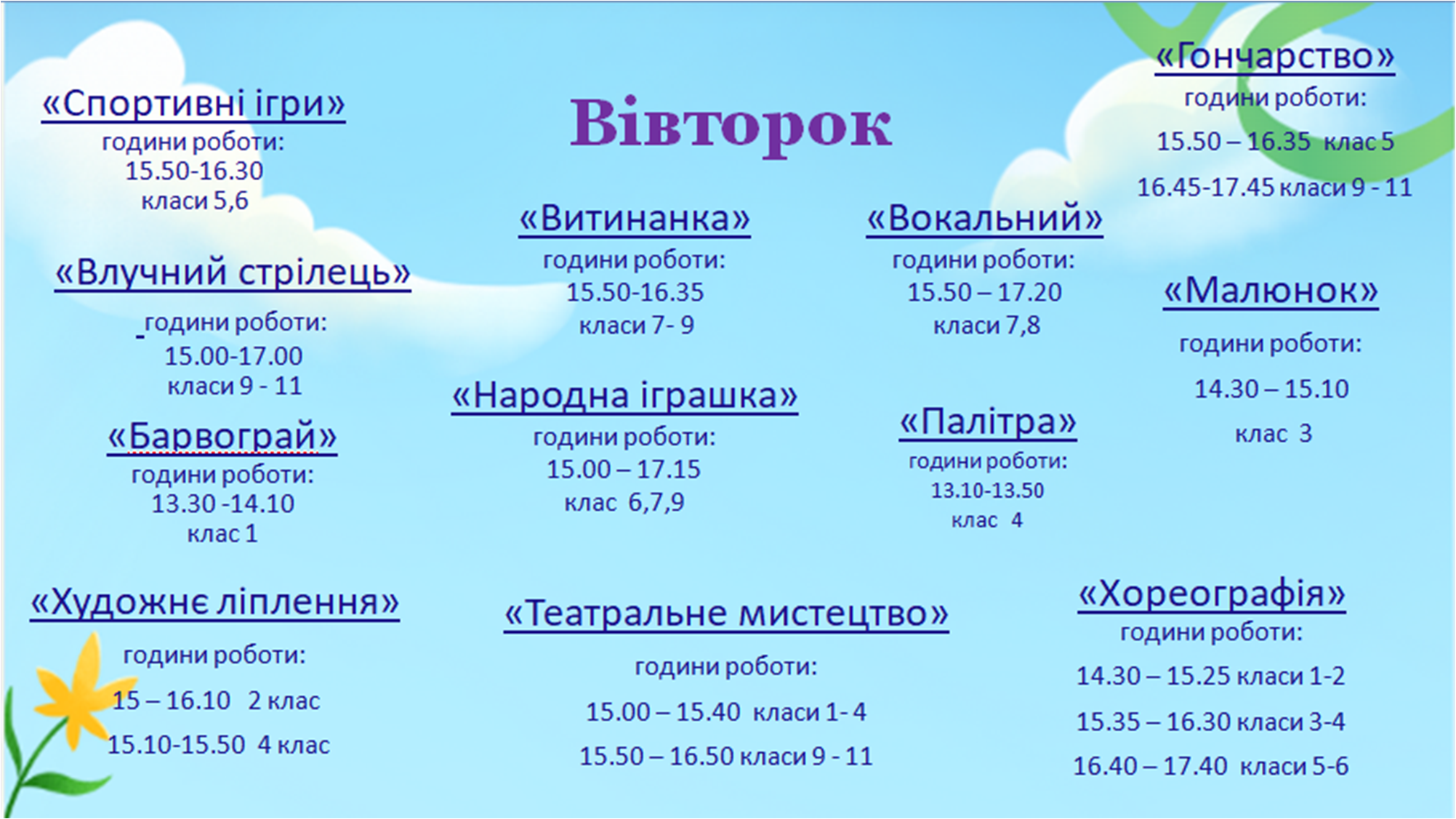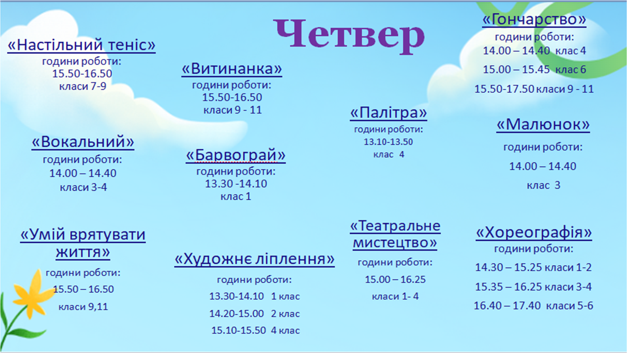 Графік роботи гуртків